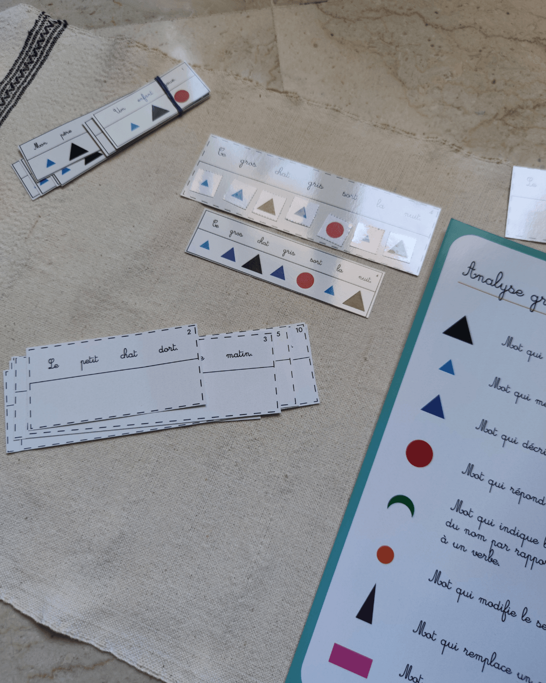 Ce module accompagne votre enfant dans l'apprentissage du français avec la pédagogie Montessori, adaptée aux 9-12 ans. Loin des exercices mécaniques, il s'agit ici de comprendre le langage en profondeur , de le manipuler avec logique, et de structurer la pensée grâce à des outils visuels, concrets et progressifs.